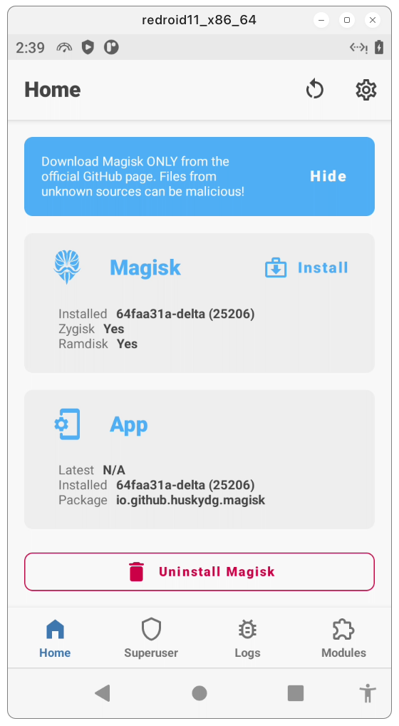## Add Magisk to ReDroid image